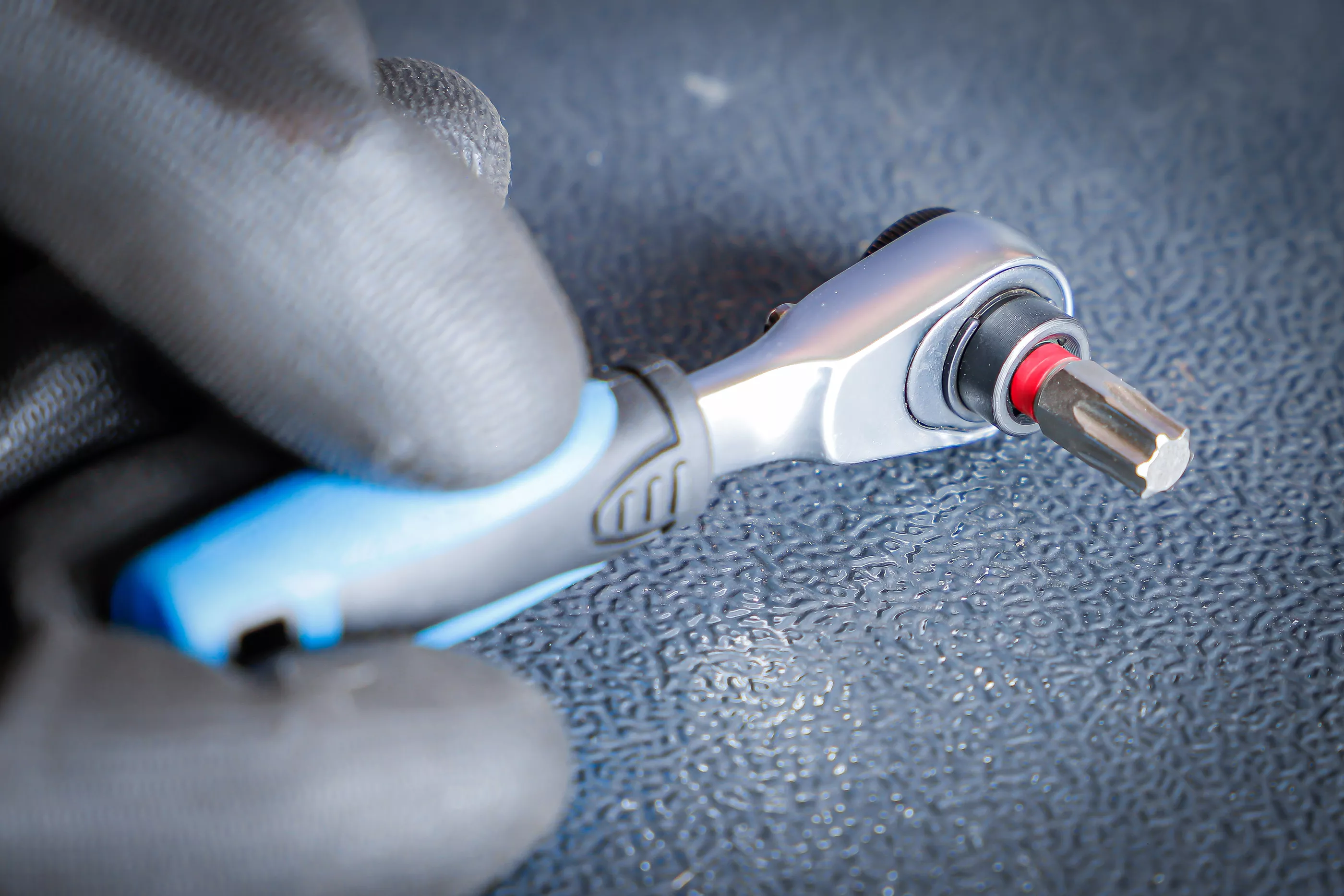 • clichet reversibil cu dantură fină de înaltă calitate, cu 72 dinţi, pârghie de comutare inserată şi mâner ergonomic din două componente