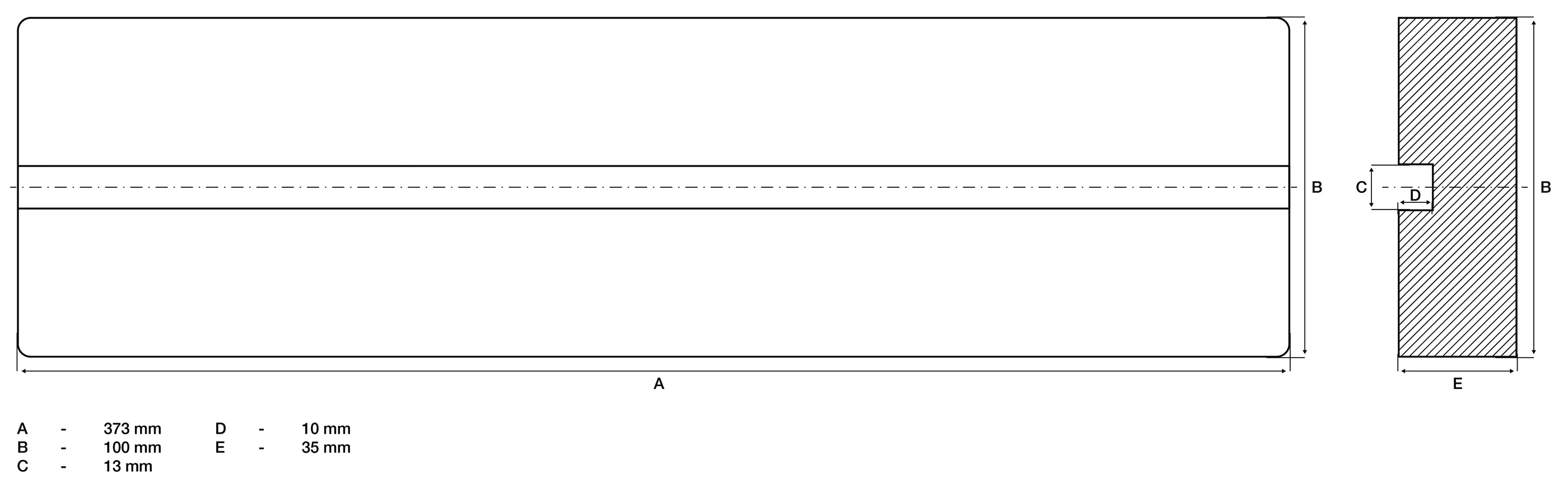 Tub de cauciuc | cu canelura | pentru platforme elevatoare | 373 x 100 x 35 mm